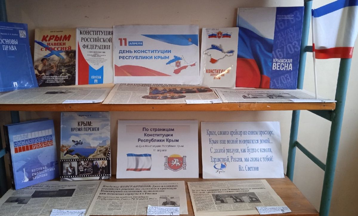 В симферопольской библиотеке-филиале №14 им. В. Ф. Войно-Ясенецкого МБУК ЦБС для взрослых организована тематическая книжная выставка «По страницам Конституции Республики Крым» (12+), ко Дню Конституции Республики Крым, 11 апреля.